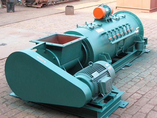 粉塵加濕攪拌機(jī)由均勻供料、葉片輸料、混合擊打加濕,振動(dòng)系統(tǒng)等四部分組成,并配以電控和供水系統(tǒng)。該設(shè)備整體固定在底座上,筒體由四組彈性元件支撐,通過激振裝置,施以震動(dòng),使整機(jī)在運(yùn)轉(zhuǎn)過程中,筒體作高頻振動(dòng),使筒壁與攪拌軸之間始終保持 的間隙,使整機(jī)運(yùn)轉(zhuǎn)阻力大幅度減小,了悶機(jī),堵轉(zhuǎn)現(xiàn)象,減小停機(jī)清理時(shí)間,提高了工作效率。供水由閥門組進(jìn)行控制。為穩(wěn)定本系統(tǒng)供水及清潔水質(zhì),管路中設(shè)置了過濾器,并由主控柜對(duì)加濕機(jī)各部分進(jìn)行聯(lián)鎖控制,以達(dá)到控制供水恒濕運(yùn)行的目的。攪拌加濕機(jī)具有處理量大、結(jié)構(gòu)緊湊、、穩(wěn)定、維修簡單等特點(diǎn)。